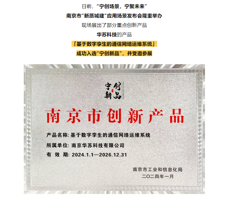 華蘇科技產品入選“寧創新品”,再獲認可!