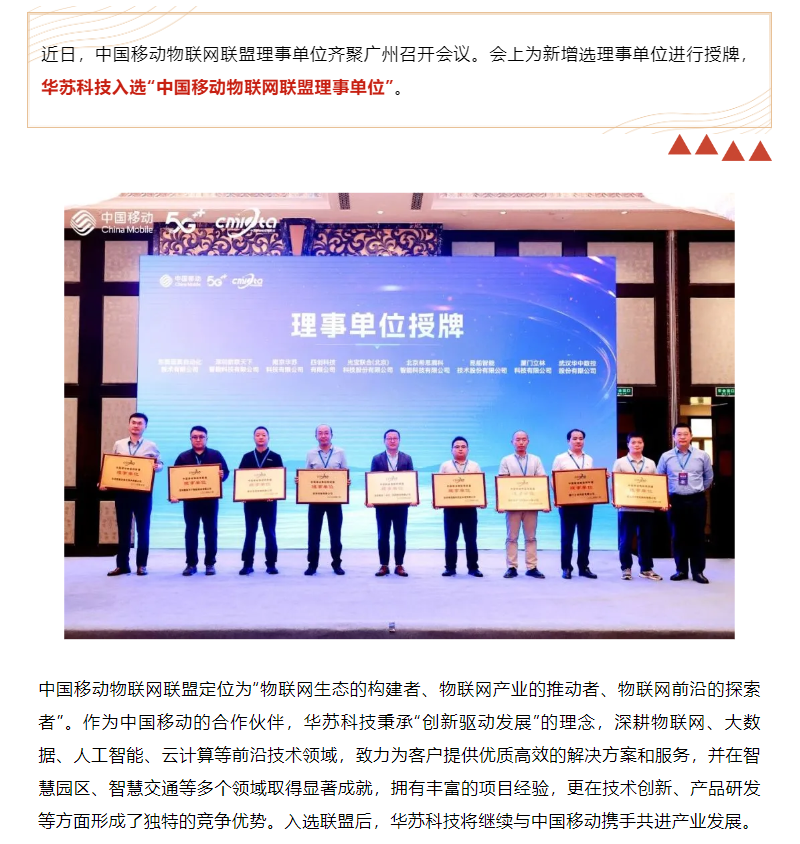 華蘇科技入選“中國移動物聯網聯盟理事單位”