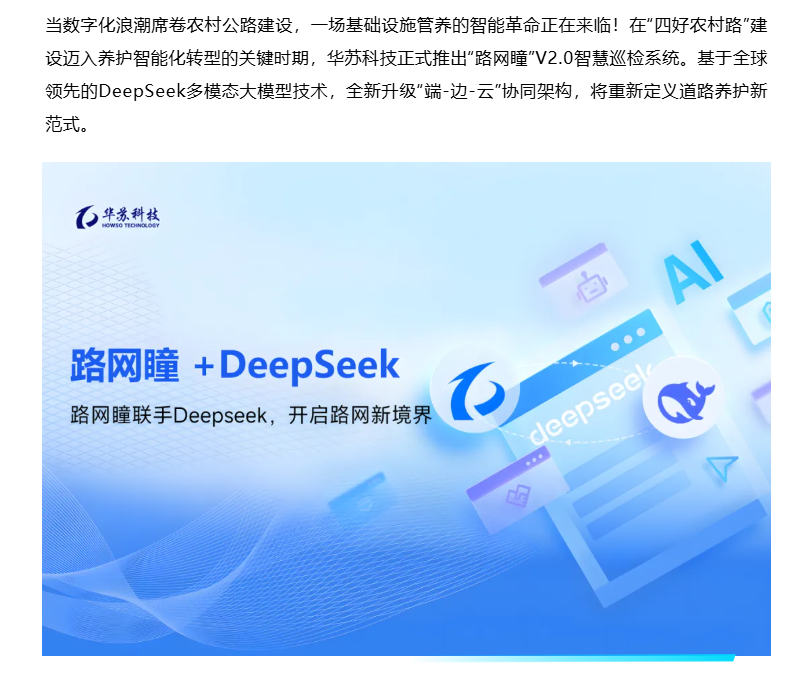 - DeepSeek+道路養護=?華蘇科技“路網瞳”V2.0帶來全新答案