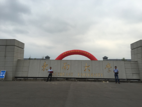 下午五點半左右,外場校園保障工作終于告一段落,他們和“東南大學”留影紀念后便匆匆趕回公司,開會探討保障工作中發現的問題并研究對策,以及明天的工作安排。趕回的途中,楊軍建說:“今天是陰天,時不時下點小雨,還是比較涼爽的。”樂呵呵的他,如此滿足。