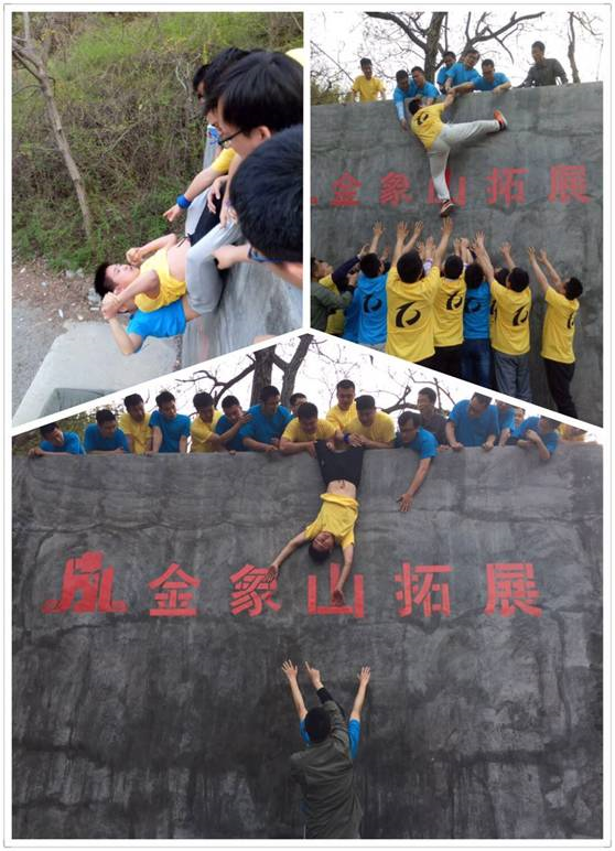 全隊所有成員在規定時間內不能借助任何外界工具,在規定時間內翻越高4米光滑墻面。 此時,團隊氣氛達到高潮,人梯搭建,面對如此挑戰,個個拼盡全力,被選為人梯的伙伴,肩膀被隊友踩出了血印,但仍堅持到最后,沒有落下一個隊友,感恩的淚水伴著感動后的喜悅,以19分38秒的成績成功翻越求生墻。 總結回顧、共同努力 拓展結束后,一季度會議如期舉行,各項目經理對一季度的工作做出總結、分析和分享,并對接下來的工作提出新的目標和計劃。力求通過大家的共同努力,打造一支充滿正能量與戰斗力的高效團隊。